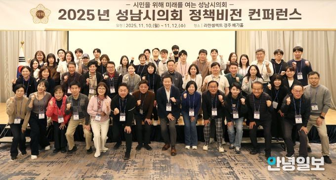 안녕일보 배윤 기자 | 성남시의회(의장 직무대리 부의장 안광림을 비롯한 의원들)는 지난 10일부터 12일까지 2박3일간 경주시 일원에서 의원 21명, 의회사무국 직원 34명과 함께 '2025년 성남시의회 정책비전 컨퍼런스'를 실시했다.