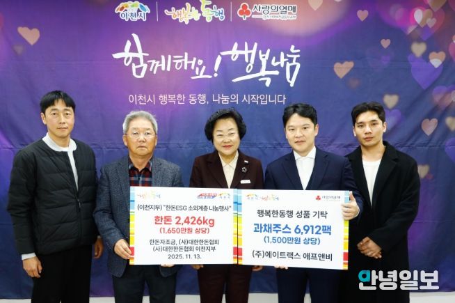 안녕일보 배윤 기자 | 이천시는 11월 13일 시청에서 지역 사회를 위한 따뜻한 나눔이 이어졌다고 밝혔다. 이날 기탁식에는 (사)대한한돈협회 이천지부와 ㈜에이트랙스 애프앤비가 참여해 이웃사랑 실천에 동참했다.