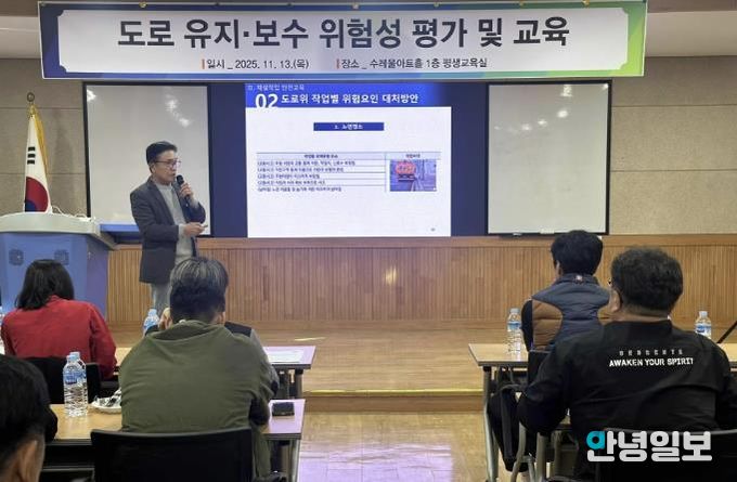 교육 주요 내용은 ▲제설 작업 시 현장에서 발생할 수 있는 위험요인 식별 및 안전수칙 준수, ▲위험성 평가 절차 및 개선방안, ▲제설 장비 운용 시 사고 예방을 위한 현장 대응 요령, ▲제설제 살포 및 적정 제설 계획 수립을 통한 도로 안전 확보 방안 등으로 구성됐다.