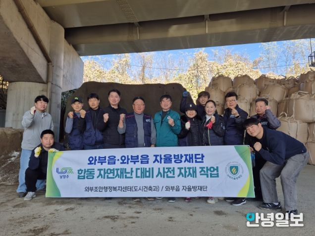 안녕일보 배윤 기자 | 남양주시는 14일 와부조안행정복지센터(센터장 곽용환)가 와부읍 자율방재단과 함께 겨울철 재난 대비를 위한 모래주머니 제작 작업을 진행했다고 밝혔다.