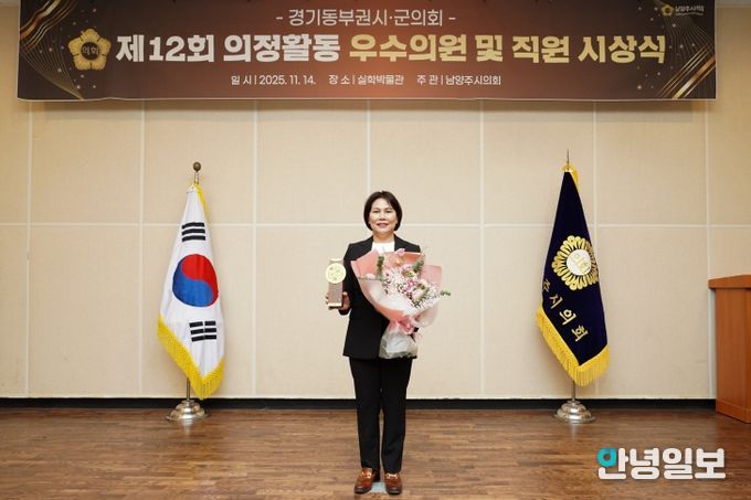안녕일보 배윤 기자 | 조예란 도시환경위원장이 시민들이 체감하는 도로·교통 환경 개선에 앞장서 온 공로를 인정받아 지난 14일 경기동부권시군의회 제12회 의정활동 우수의원으로 선정됐다. 조 위원장은 그동안 신현동·문현동을 중심으로 상습 정체 구간과 생활도로 문제를 꾸준히 제기하고, 관련 사업 추진과 예산 반영을 이끌어내며 ‘현장 중심’ 의정활동을 이어왔다.
