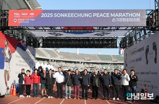 안녕일보 배윤 기자 | 16일 ‘2025 손기정 평화마라톤대회’가 열린 고양종합운동장, 이동환 고양특례시장은 환영사를 통해 “광복 80주년을 기념한 뜻깊은 대회, 도로 위를 맘껏 달리며 자유를 만끽하고 광복의 의미를 되새기길 바란다”고 말했다.