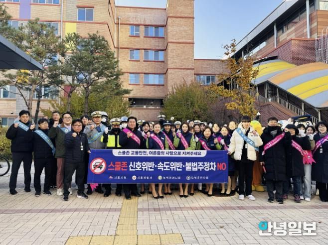 안녕일보 배윤 기자 | 시흥시는 지난 11월 18일 오전 은빛초등학교 앞에서 초등학생들의 안전한 등굣길을 조성하기 위해 ‘어린이 교통안전 캠페인’을 진행했다.