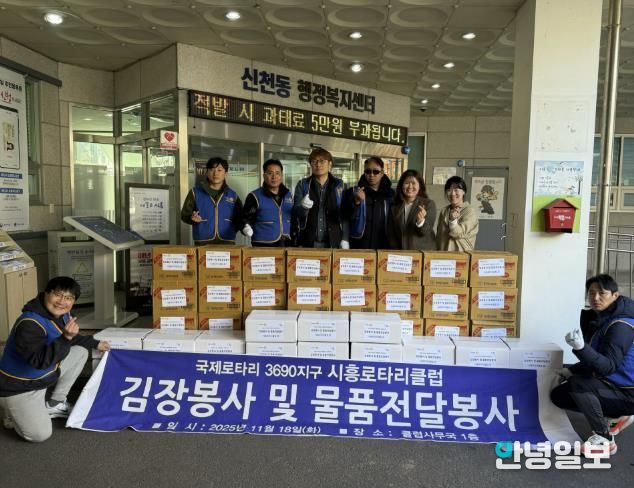 안녕일보 배윤 기자 | 국제로타리3690지구 시흥지역 시흥로타리클럽은 지난 11월 18일 신천동 행정복지센터를 찾아 김장 김치 240kg와 라면 30상자를 전달했다.