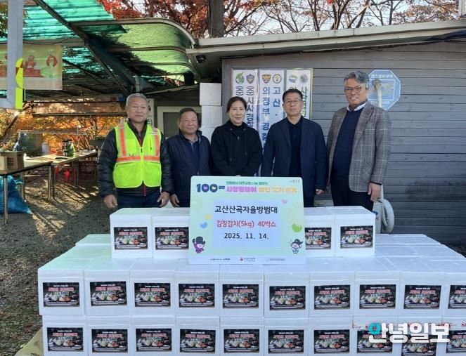고산산곡자율방범대는 지역 안전을 책임지는 봉사단체로서 매년 ‘100일간 사랑릴레이 배턴 잇기’에 참여하고 있으며, 지난해에도 김장김치 70상자를 후원한 데 이어 지속적으로 이웃사랑 실천에 앞장서고 있다.