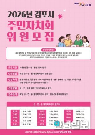 이번 모집은 주민자치회의 자율적 기반을 강화하고 자치역량을 높이기 위해 개정된 '김포시 주민자치회 및 주민자치센터 설치·운영에 관한 조례'에 근거해 추진된다. 김포시는 이번 조례 개정을 통해 주민자치회의 자율성과 전문성 강화를 통한 실질적 주민자치 실현의 기반을 마련했다.