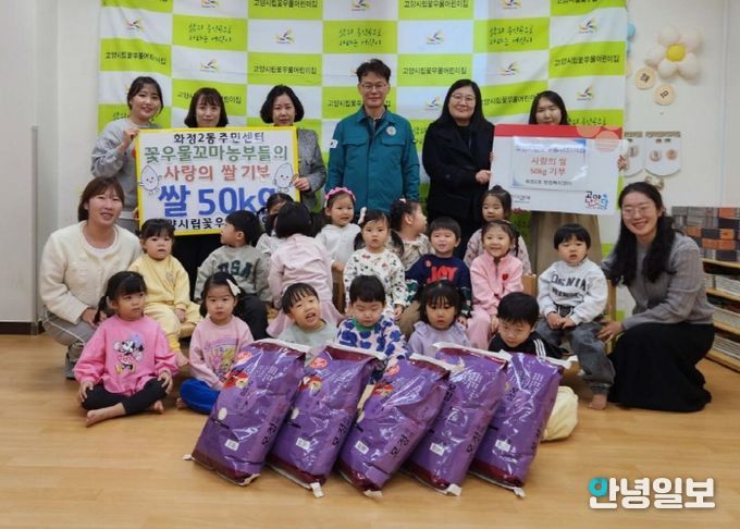 안녕일보 배윤 기자 | 고양특례시 덕양구 화정2동은 지난 18일 고양시립꽃우물어린이집에서 어려운 이웃을 돕기 위해 쌀 50kg(10kg 5포)을 화정2동 행정복지센터에 기부했다고 밝혔다.