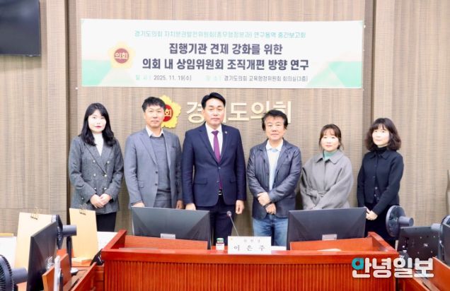 안녕일보 배윤 기자 | 경기도의회 자치분권발전위원회 총무행정분과 이은주 위원장(국민의힘, 구리2)은 11월 19일, 「집행기관 견제 강화를 위한 의회 내 상임위원회 조직개편 방향 연구」 중간보고회를 주재했다. 이번 회의는 지난 9월 29일 열린 착수보고회 이후 연구 추진 경과를 점검하고, 향후 연구 방향을 구체화하기 위해 마련됐다.