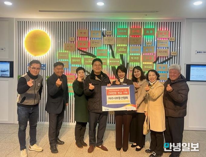 안녕일보 배윤 기자 | 한국공인중개사협회 파주시지회는 지난 19일 월롱면 새로움지역아동센터에 도서구입비 250만 원을 후원하고, 금촌3동 거주 소년소녀가장 가구에 200만 원 상당의 농협 상품권을 전달하며 지역 내 어려운 이웃의 복지 향상에 힘을 보탰다.
