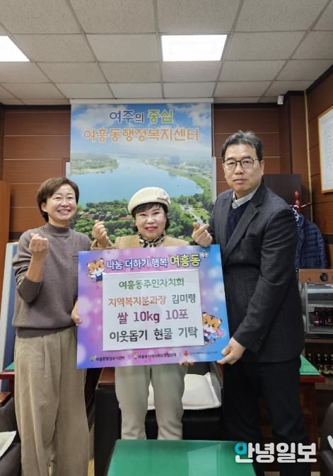 안녕일보 배윤 기자 | 여흥동주민자치회 지역복지분과 김미령 분과장은 지난 19일, 여흥동행정복지센터를 방문해 지역 내 어려운 이웃을 위한 쌀 10kg 10포(총 100kg)를 기탁했다.