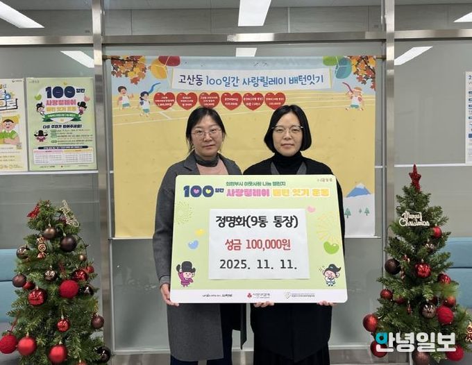 안녕일보 배윤 기자 | 의정부시 고산동주민센터는 고산동 통장협의회가 ‘100일간 사랑릴레이 배턴 잇기’에 참여해 이웃사랑 실천에 동참했다고 20일 밝혔다.