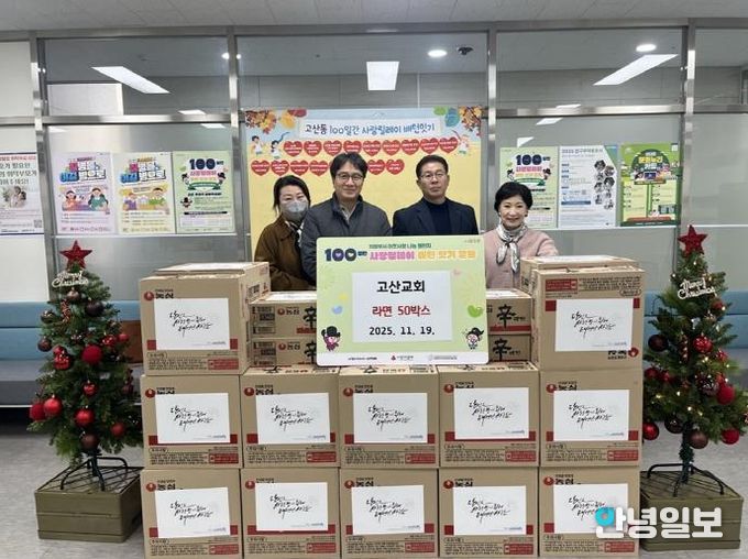 이봉득 동장은 “매년 지역사회에 온정을 전하기 위해 힘써주시는 조성조 목사님과 고산교회 성도분들께 감사드린다”며 “기탁해 주신 라면과 함께 고산교회의 따뜻한 마음을 이웃분들께 잘 전할 수 있도록 노력하겠다”고 말했다.