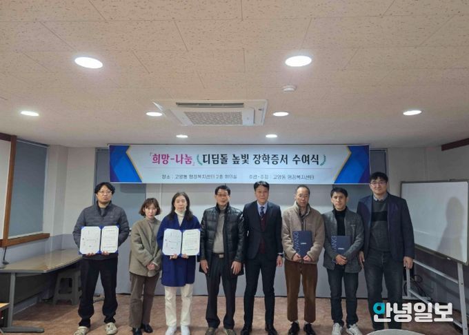 안녕일보 배윤 기자 | 고양특례시 덕양구 고양동 지역사회보장협의체는 지난 18일, 동 행정복지센터에서 관내 초중고 4개교 관계자와 함께 ‘희망디딤돌 높빛장학금’ 전달식을 개최했다.