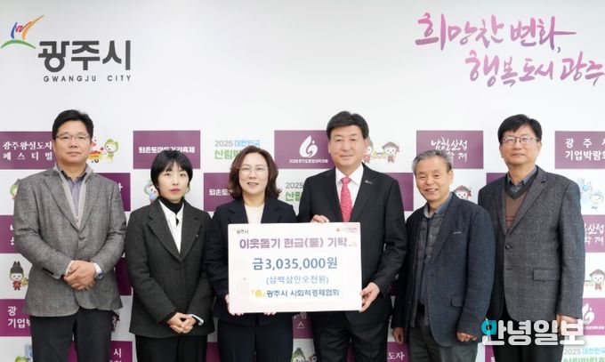 안녕일보 배윤 기자 | 광주시 사회적경제협회 소속 사회적경제 기업들이 ‘2025년 광주시 사회적경제 나눔장터’를 통해 마련한 판매 수익금 303만 5천 원을 20일 광주시에 이웃돕기 성금으로 기탁했다.