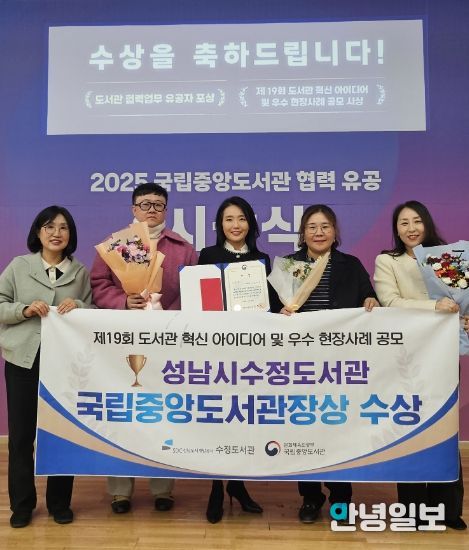 안녕일보 배윤 기자 | 성남도시개발공사 수정도서관은 국립중앙도서관이 주최한 ‘제19회 도서관 혁신 아이디어 및 우수 현장사례 공모’에서 국립중앙도서관장상을 수상했다고 21일 밝혔다.