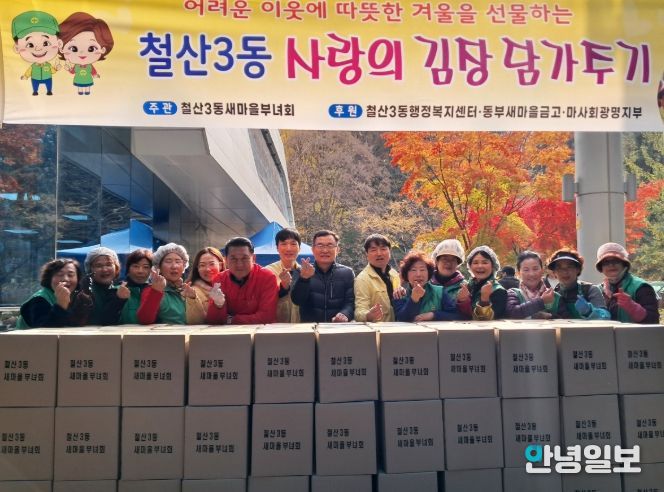 안녕일보 배윤 기자 | 광명시 철산3동 새마을부녀회는 지난 19일부터 20일까지 이틀간 철산3동 행정복지센터 앞마당에서 ‘사랑의 김장 나누기’ 행사를 열었다.