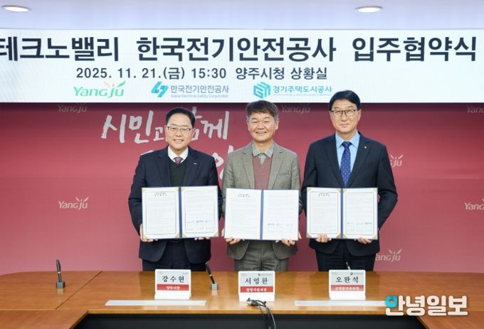 안녕일보 배윤 기자 | 경기주택도시공사(GH)는 21일 양주시청 상황실에서 양주시, 한국전기안전공사와 함께 ‘한국전기안전공사 북부지역본부’의 경기양주 테크노밸리 입주를 위한 협약식을 체결했다고 밝혔다.