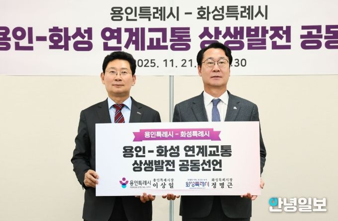 안녕일보 배윤 기자 | 용인특례시와 화성특례시가 양 도시 간 교통편의 증진, 반도체산업 경쟁력 강화 등을 위한 ‘도시 및 산업 연계형 교통망 구축’에 힘을 모으기로 했다.