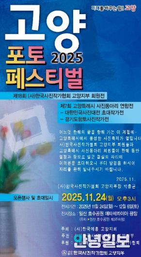 안녕일보 배윤 기자 | 고양특례시가 후원하고 (사)한국사진작가협회 고양지부가 주관하는‘2025 고양 포토페스티벌’이 오는 24일부터 12월 6일까지 일산호수공원 메타세쿼이아광장에서 개최된다.