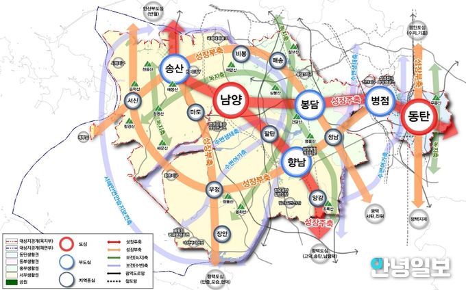 생활권은 동탄, 동부, 중부, 서부 총 4개 권역으로 계획했으며 ▲동탄생활권은 신산업 생태계 구축 및 친환경 생태도시 기반 마련 ▲동부생활권은 광역환승거점 조성을 통한 원도심 정비 및 관광산업 육성 ▲중부생활권은 산·학·연 연계 네트워크 조성 및 녹색관광벨트 구축 ▲서부생활권은 자동차·바이오 등 신성장산업 연계 클러스터 구축과 해양 관광산업 육성을 발전전략으로 제시했다.