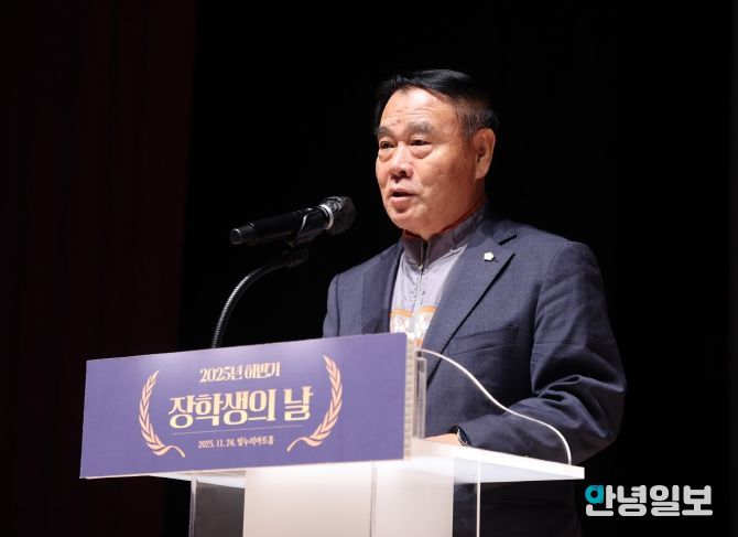 안녕일보 배윤 기자 | 수원특례시의회 이재식 의장이 24일, 빛누리아트홀에서 열린 ‘수원시장학재단 2025년 하반기 장학증서 수여식’에 참석해 장학생으로 선발된 학생들을 축하하고 격려했다.