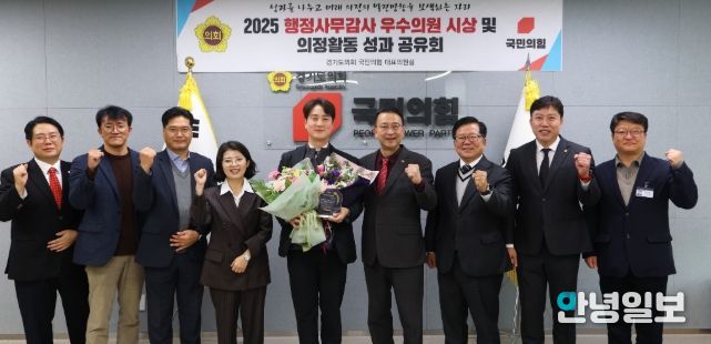 안녕일보 배윤 기자 | 경기도의회 교육행정위원회 김일중 의원(국민의힘, 이천1)이 24일 오전 경기도의회 국민의힘 회의실에서 열린 ‘행정사무감사 우수의원 시상 및 의정활동 성과 공유회’에서 ‘행정사무감사 우수의원’에 선정됐다. 이번 수상은 2025년도 행정사무감사에서 도민 중심의 정책 대안을 제시하며 실효성 있는 민생 교육행정을 구현하는 데 기여한 점이 높게 평가된 결과다.