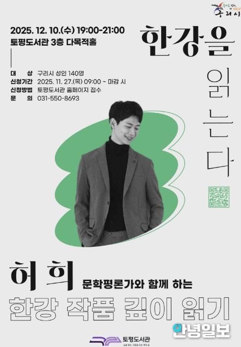 이번 특강은 한강 작가의 노벨문학상 수상 1주년을 기념해 마련된 프로그램으로, 오는 12월 10일 저녁 7시 토평도서관 3층 다목적홀에서 진행된다.