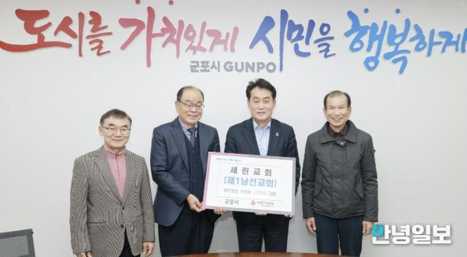 안녕일보 배윤 기자 | 군포시는 지난 25일 군포시 산본로에 위치한 세린교회 남성 성도들로 구성된 제1남선교회로부터 현금 150만원을 기탁받았다.