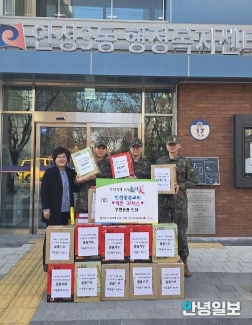 안성맞춤교회는 매년 추수감사절을 기념하여 지역사회의 어려운 이웃들에게 도움을 전해오고 있으며, 올해는 특히 청년 군인들이 함께 기부 활동에 참여해 그 의미를 더했다. 기탁된 라면 34박스는 안성3동 행정복지센터를 통해 지역 내 취약계층 가정에 전달될 예정이며, 추운 겨울을 맞이한 이웃들에게 실질적인 지원이 될 것으로 기대된다.
