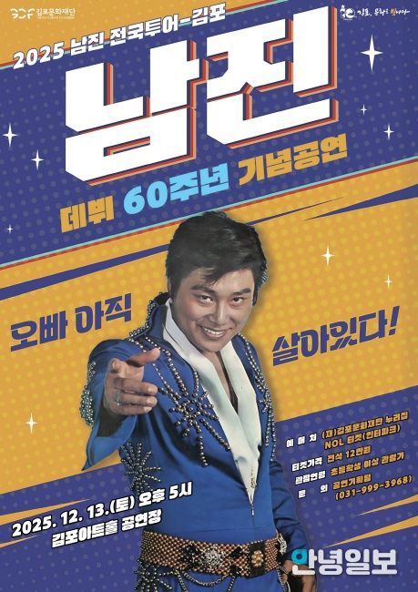안녕일보 배윤 기자 | (재)김포문화재단(대표이사 이계현)은 오는 12월 13일 김포아트홀에서 2025 김포아트홀 송년 기획공연 '2025 남진 전국투어-김포'를 개최한다고 밝혔다.