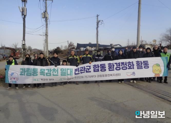 안녕일보 배윤 기자 | 시흥시 과림동 행정복지센터는 지난 12월 3일 관내에 주둔하는 제7578부대 및 동 관계단체와 합동으로 목감천 일대 환경정화 활동을 진행했다.