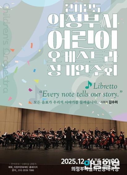 안녕일보 배윤 기자 | (재)의정부문화재단은 오는 12월 16일 의정부예술의전당 대극장에서 '2025 의정부어린이오케스트라 정기연주회 ‘Libretto’' 공연을 개최한다고 밝혔다.