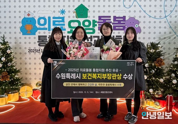 안녕일보 배윤 기자 | 수원특례시가 보건복지부 주관 2025년도 의료‧요양‧돌봄 통합지원 성과대회에서 ‘의료‧돌봄 통합지원 유공 보건복지부 장관 표창’을 받았다. 시상식은 5일 세종컨벤션센터에서 열렸다.