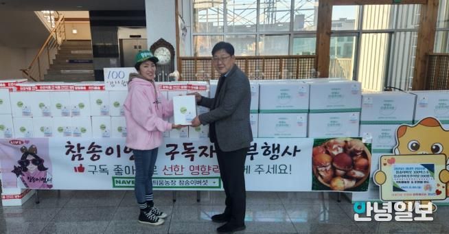 지난 8일 관내 버섯재배농가 싹틔움농장과 즉석조리식품 제조기업 피앤엘푸드는 정남면에 각각 영양이 풍부한 참송이버섯 100박스와 간편하게 섭취할 수 있는 참송이추어탕 200개를 전달했다.