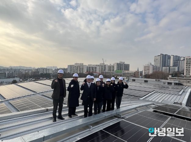 안녕일보 배윤 기자 | 경기도는 15일 수원월드컵경기장 스포츠센터 옥상에 설치된 태양광발전소를 방문해, 공공시설 유휴부지를 활용한 재생에너지 공급 확대 현황을 점검하고, 공공부문 RE100 달성을 위한 추진 상황을 공유했다. 이번 현장 방문에는 차성수 기후환경에너지국장을 비롯해 경기도수원월드컵경기장관리재단, 경기환경에너지진흥원 관계자들이 함께했다.