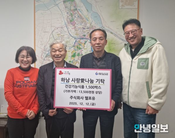 안녕일보 배윤 기자 | 지난 12일, ㈜웰포유(대표 김기수)는 1,350만원 상당의 건강기능식품 1,500박스를 하남시에 기탁했다.