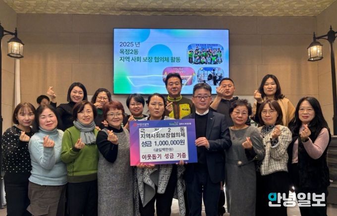 안녕일보 배윤 기자 | 옥정2동 지역사회보장협의체가 지난 15일 지역의 복지 사각지대 해소를 위해 민간위원들이 자발적으로 회비를 모아 마련한 이웃돕기 성금 100만 원을 옥정2동 행정복지센터에 전달했다.