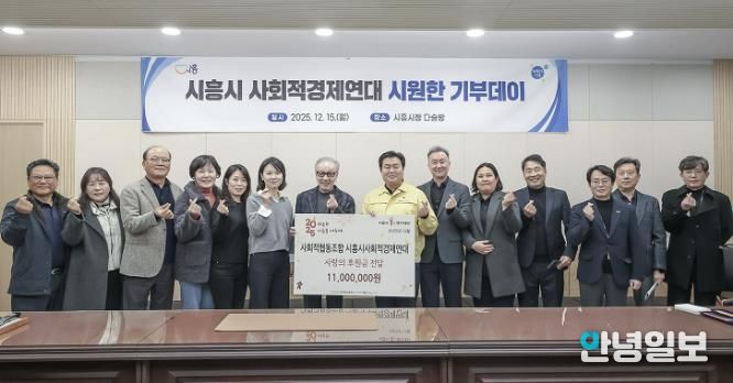 안녕일보 배윤 기자 | 시흥시사회적경제연대는 지난 12월 15일 시흥시 취약계층을 지원하기 위해 ‘시원한 기부 데이’를 열고, 시흥시1%복지재단에 지정기탁 기부금 1천만 원을 전달했다.