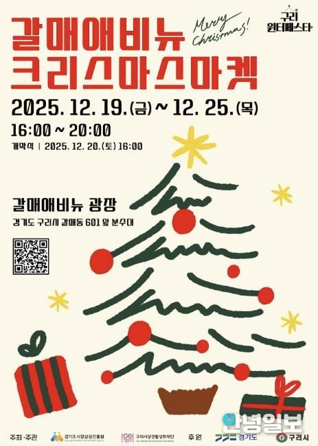 안녕일보 배윤 기자 | 구리시상권활성화재단은 오는 12월 19일부터 25일까지 갈매 애비뉴 광장에서 ‘2025 구리윈터페스타–갈매애비뉴 크리스마스 마켓’을 개최한다고 밝혔다.