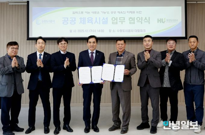 안녕일보 배윤 기자 | 수원도시공사는 공공 체육시설의 인력 공백 최소화 등 안정적인 운영 강화를 위해 화성도시공사와 업무협약을 체결했다고 17일 밝혔다.