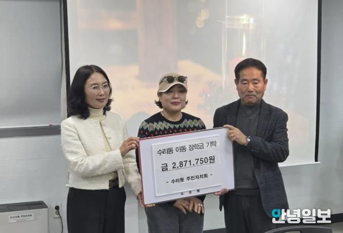 양애자 수리동장은 “주민들의 참여로 마련된 장학금이 아이들에게 따뜻한 응원과 용기가 되길 바란다”며 “행정에서도 이러한 주민 중심의 나눔 활동이 지속될 수 있도록 적극 지원하겠다”고 말했다.
