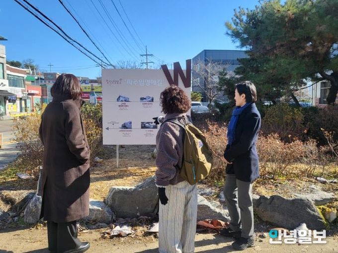 파주임명애길은 파주시 교하동 일대 약 1km 구간으로, 총 6개 지점에 조형물이 설치됐다. 임명애 지사는 파주 지역 만세운동을 주도한 인물로, 탐방로 시작 지점의 입간판은 3·1운동 만세 시위가 있었던 교하동행정복지센터에 설치됐다. 이어지는 생가터에서는 가족을 돌보며 독립운동을 이어간 임명애 지사의 삶이 소개된다.