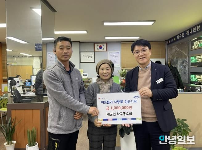 지난 16일, 매년 기부를 이어오고 있는 개군면 탁구동호회(회장 김상돈)는 성금 100만 원을 기탁했으며, 개군면 지역사회보장협의체 주해생 위원도 성금 50만 원을 전달하며 나눔에 동참했다.