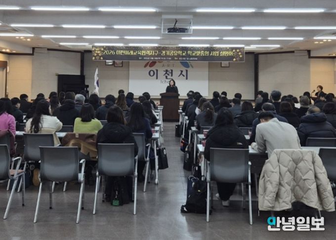 안녕일보 배윤 기자 | 이천교육지원청은 이천시와 함께 12월 18일, 이천시청 1층 소통큰마당에서 관내 60교 교감 및 업무담당교사 등을 대상으로 ‘2026 이천미래교육협력지구-경기공유학교 학교맞춤형 사업설명회’를 개최했다.