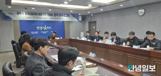 안녕일보 배윤 기자 | 파주시는 지난 19일, 중대산업재해 예방 및 재발 방지 실행 체계를 마련하기 위한 '파주시 중대산업재해 예방 전문 컨설팅 용역' 착수보고회를 개최했다. 시는 이번 연구용역을 통해 파주시의 안전보건관리체계를 총체적으로 점검하고 재정립해 중대산업재해 예방에 총력을 기울여나간다는 계획이다.