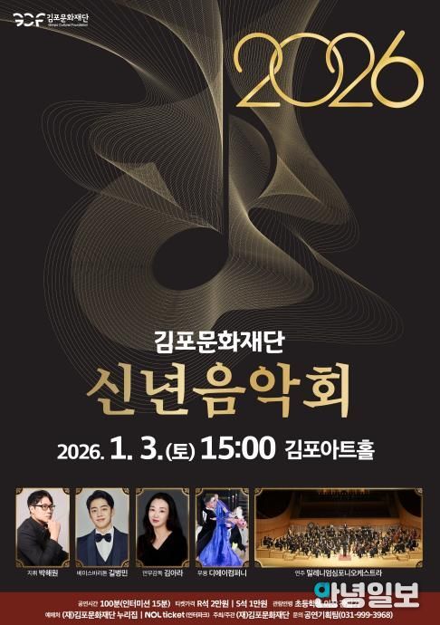 안녕일보 배윤 기자 | (재)김포문화재단이 새해 첫 무대로 내년 1월 3일 김포아트홀에서 '2026년 김포문화재단 신년 음악회'를 개최한다고 밝혔다.