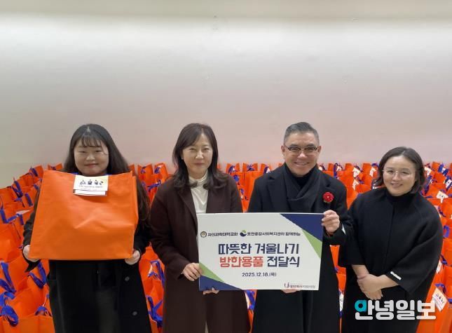 안녕일보 배윤 기자 | 포천시종합사회복지관과 차의과학대학교는 지난 18일 차의과학대학교 사회봉사센터에서 따뜻한 겨울나기를 위한 ‘2025년 사랑의 방한용품 나눔’ 전달식을 진행했다.