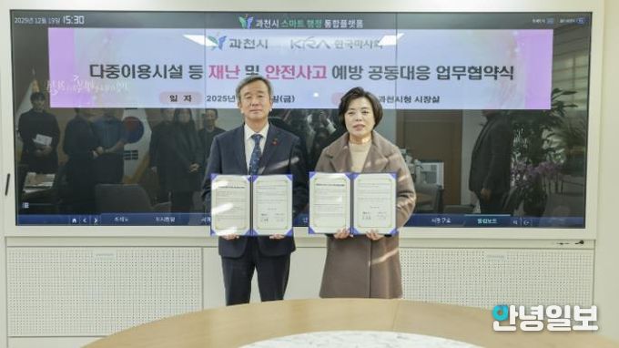 안녕일보 배윤 기자 | 과천시는 지난 19일 한국마사회와 ‘재난 안전 강화를 위한 공동대응’ 업무협약을 체결했다고 22일 밝혔다. 이번 협약은 재난 발생 시 신속한 대응 체계를 마련하고, 지역사회 안전 관리 역량을 높이기 위해 추진됐다.