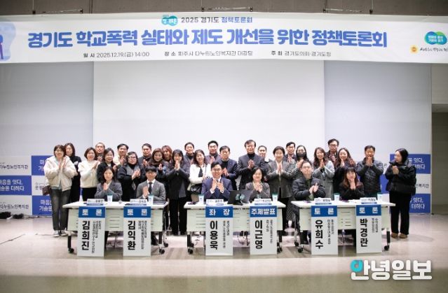 안녕일보 배윤 기자 | 경기도의회 경제노동위원회 이용욱 의원(더불어민주당, 파주3)이 좌장을 맡은 '경기도 학교폭력 실태와 제도 개선을 위한 정책토론회'가 19일 오후 2시 파주운정다누림노인복지관에서 성황리에 개최됐다.