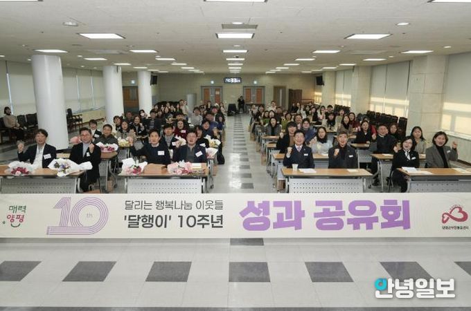 안녕일보 배윤 기자 | 양평군은 지난 18일 군청 대회의실에서 찾아가는 민관협력 보건복지 서비스 ‘달리는 행복나눔 이웃들’ 사업의 10주년을 기념하는 성과공유회를 성황리에 개최했다고 밝혔다.